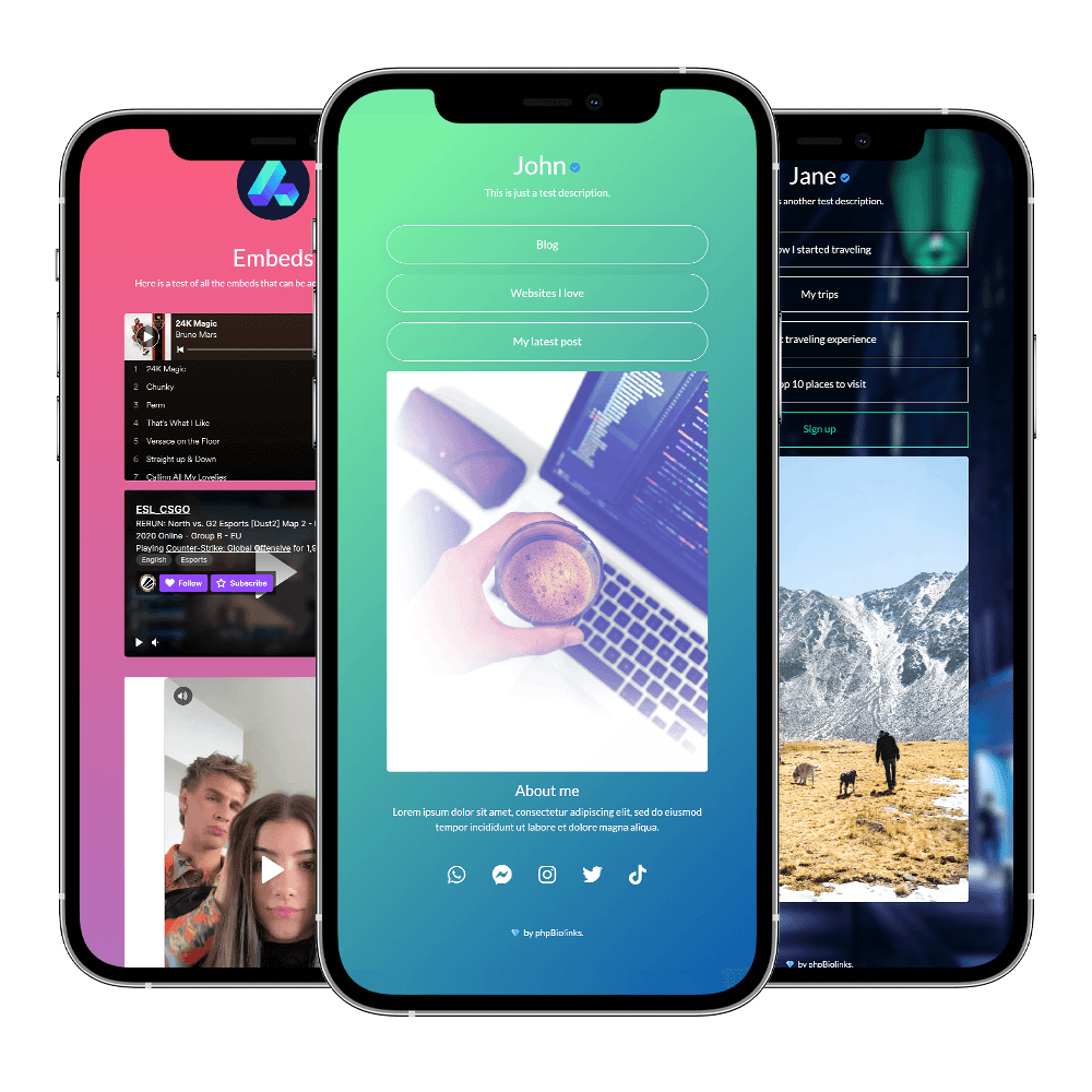 Shorten URLs, create bio link pages, custom QR codes, vcard links, file links & more.